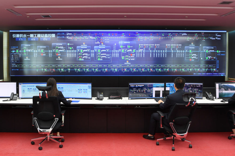 這是2021年9月6日在甘肅省引洮工程水資源利用中心調(diào)度中心拍攝的引洮供水一期工程調(diào)度現(xiàn)場(chǎng)。 新華社記者 范培珅 攝