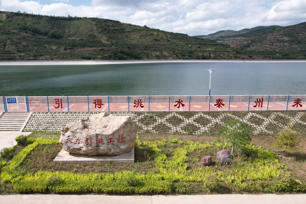 這是近日在天水市秦州區(qū)拍攝的天水市城區(qū)引洮供水工程楊家灣調(diào)蓄水池(無人機(jī)照片)。新華社記者 范培珅 攝