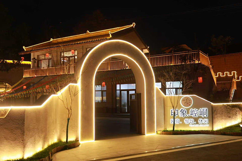 崆峒鎮(zhèn)西溝村已建成的窯洞民宿夜景